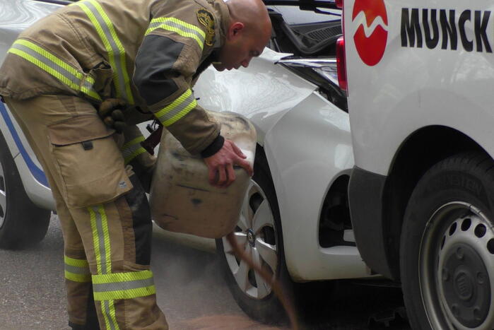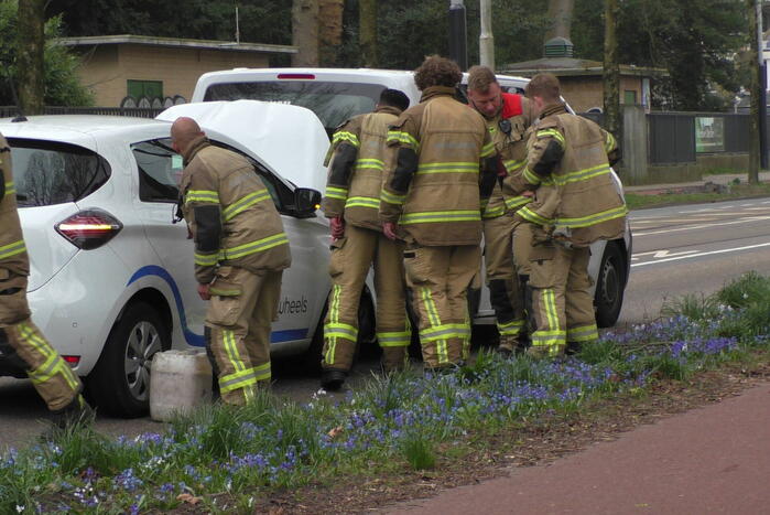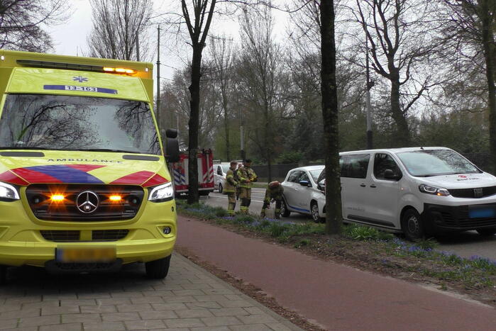Hierbij is een personenwagen en een taxibus betrokken geraakt. De brandweer is ingezet, maar uiteindelijk hoefde de brandweermannen alleen maar hand- en spandiensten uit te voeren.