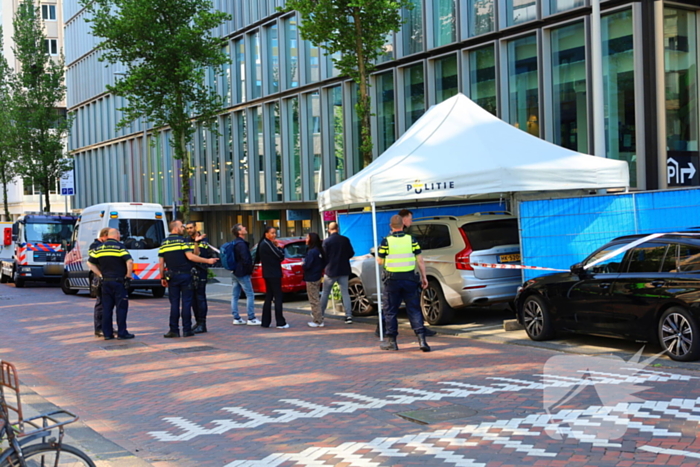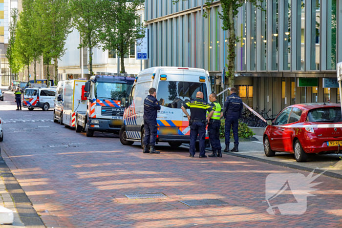 Bij een hotel is een overleden persoon aangetroffen, wat heeft geleid tot de inzet van forensische opsporing door de politie. De straat is afgezet met lint in verband met het onderzoek. De oorzaak van het incident is momenteel nog onduidelijk, en er zijn geen verdere details beschikbaar over de toedracht of betrokkenen.