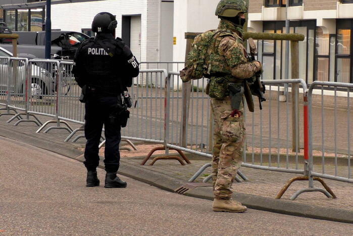 In de rechtbank gaat vanochtend het Marengo-proces tegen Ridouan Taghi en zijn medeverdachte verder. De militairen helpen de politie bij de beveiliging voor en rondom 'De Bunker'.