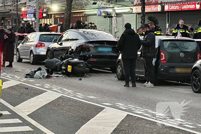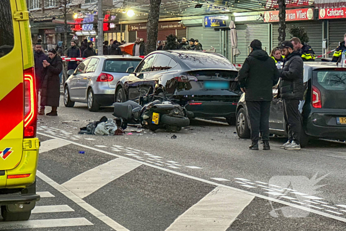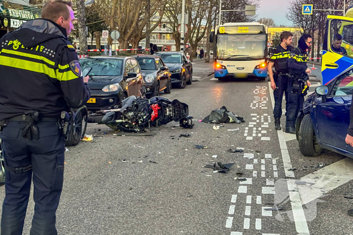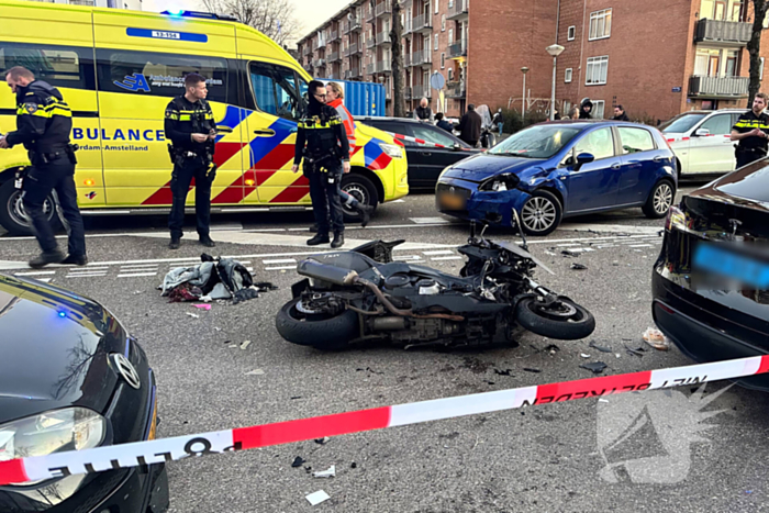 Een motorrijder en een automobilist zijn met elkaar in botsing gekomen. Hoe dit heeft kunnen gebeuren, is niet duidelijk. Meerdere hulpdiensten waaronder het Mobiel Medisch Team, werden ingezet. Het slachtoffer werd met spoed overgebracht naar het ziekenhuis voor verdere behandeling. De bestuurder van de auto is met de schrik vrijgekomen. Beide voertuigen hebben flinke schade opgelopen.