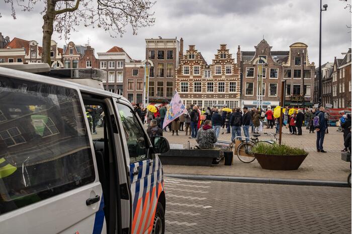 In verband met werkzaamheden aan het Museumplein moest een andere locatie gevonden worden om te demonstreren (koffiedrinken) tegen de coronamaatregelen en dat werd de Nieuwmarkt.