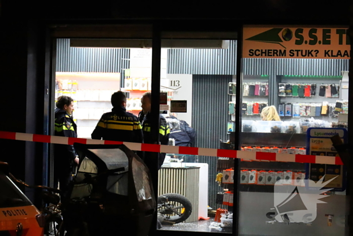 De Forensische Opsporing heeft een onderzoek gestart. In de winkel ligt een fatbike, maar het is niet bekend of deze van de overvallers is.