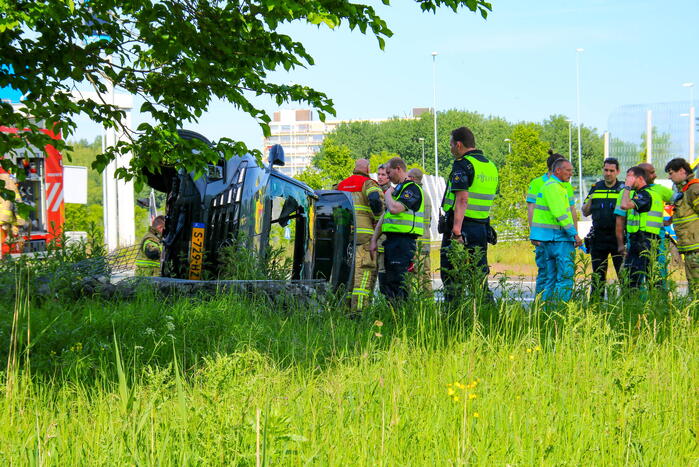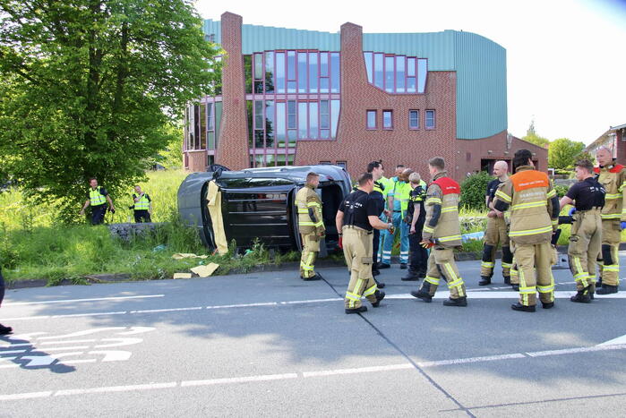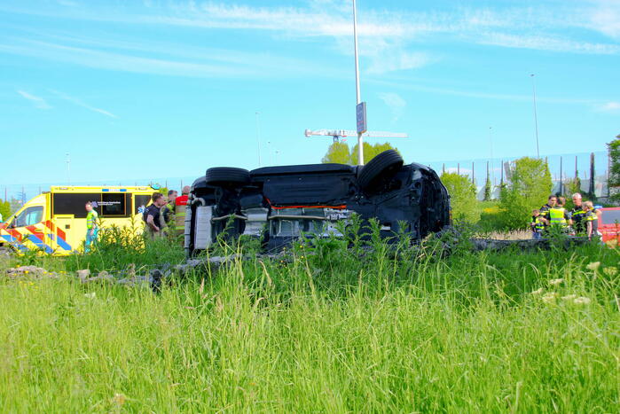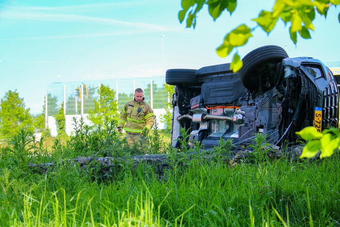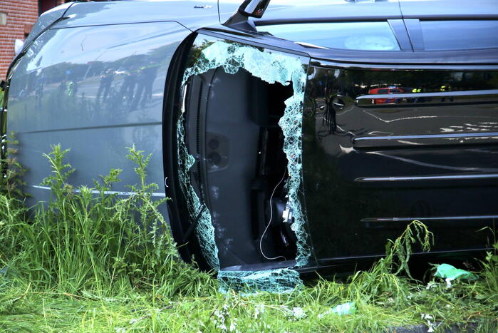 Auto op zijn kop bij eenzijdig ongeval