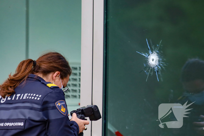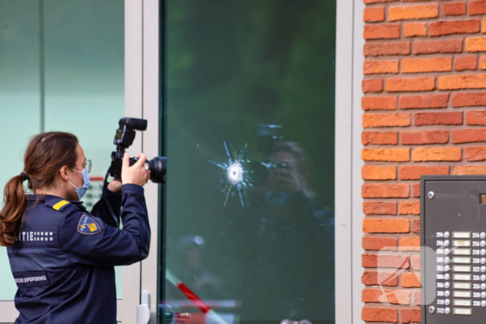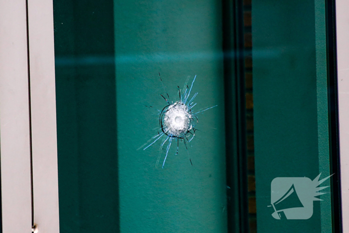 De straat is afgesloten en in een raam is een kogelgat aangetroffen. Vermoedelijk bevindt zich onder een pylon een kogelhulsel. De politie is een onderzoek gestart naar het voorval.