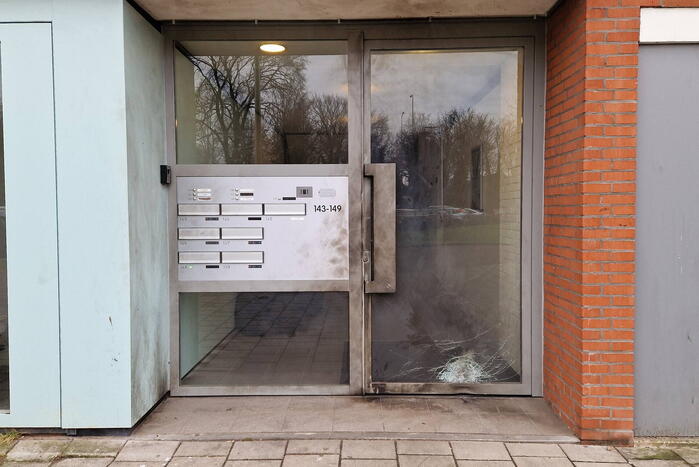 De politie is een onderzoek gestart naar een explosie die afgelopen nacht voor schade heeft gezorgd. Een deur van een portiek raakte beschadigd en de ingang is bedekt met een laag roet. Specialisten van de politie onderzoeken het incident.
