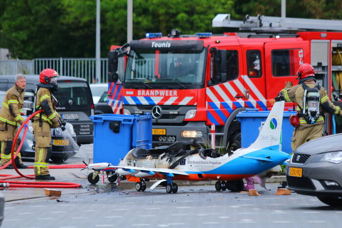 Tijdens het testen van een prototype elektrisch vliegtuig bij het Nederlands Lucht- en Ruimtevaartcentrum brand. Brandweerlieden werden ingezet om de brand te blussen. Het vliegtuig ging door de brand verloren.