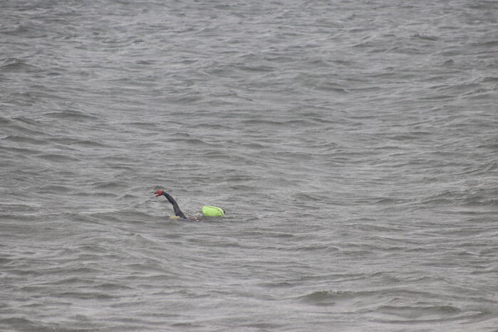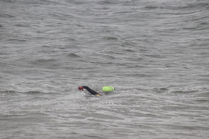 De zwemmer kon zijn weg weer vervolgen nadat hij in orde bleek te zijn.