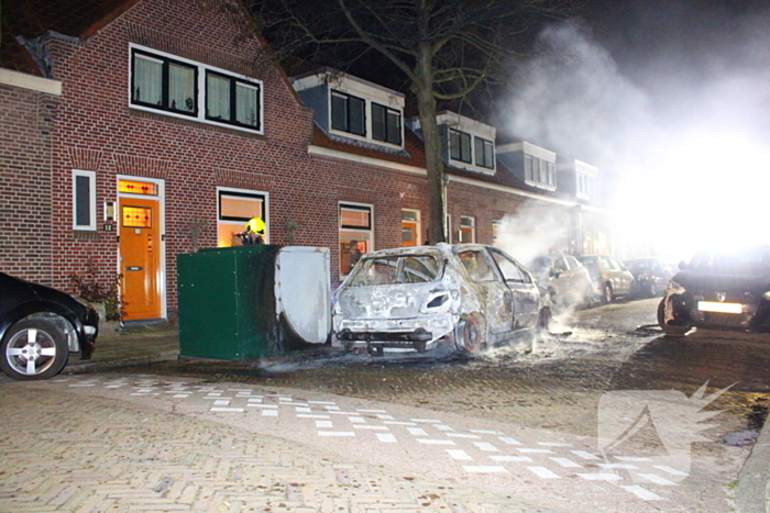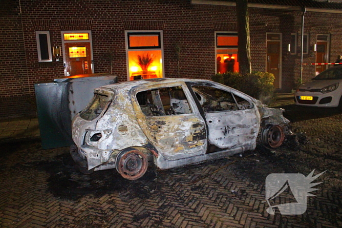 Geparkeerde auto beschadigd door brand
