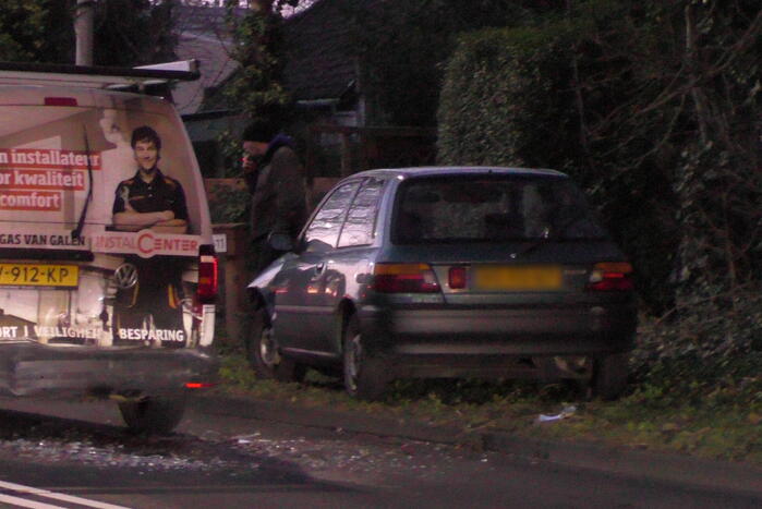 Bij het ongeval tussen drie voertuigen is flinke schade ontstaan. Door het ongeval kwam een auto zwaar beschadigd in de berm terecht. Geen van de betrokken personen raakten gewond.
