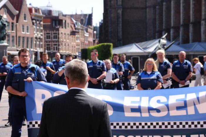HAARLEM - Dinsdagmorgen 26 mei rond 11.40 uur hebben vele handhavers zich verzameld aan de Grote Markt in 112 Haarlem.