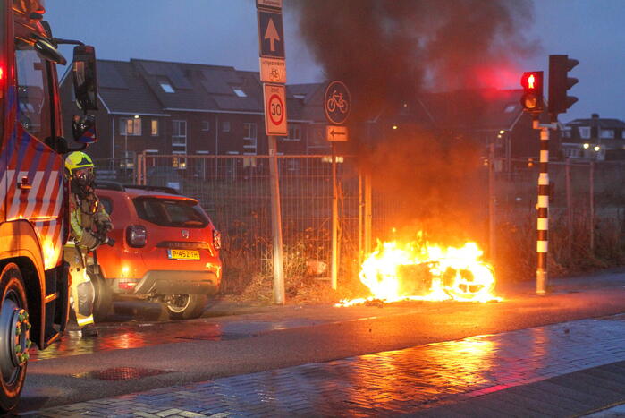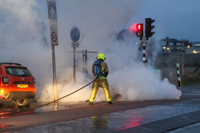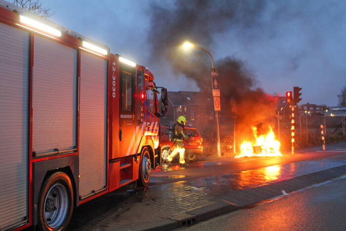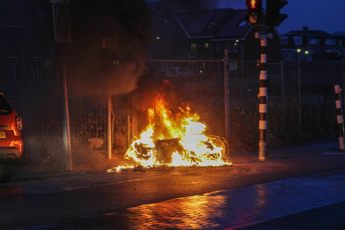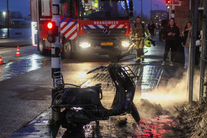 De tweewieler stond bij aankomst van de brandweer compleet in lichterlaaie. De brandweer heeft de brand weten te blussen, echter konden zij niet voorkomen dat de scooter compleet uitbrandde.