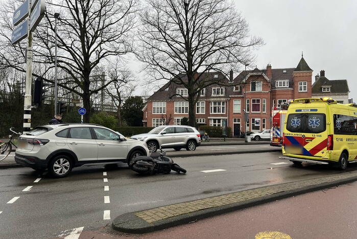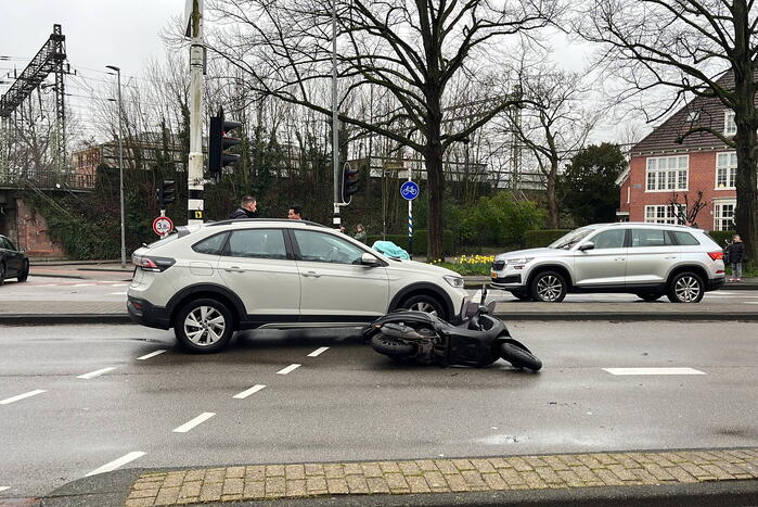 Een scooterrijder en automobilist kwamen bij een oversteekplaats in botsing. De bestuurder van de scooter kwam ten val en raakte gewond. Het slachtoffer werd na behandeling vervoerd naar een ziekenhuis.