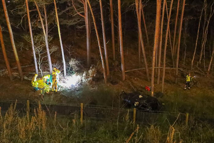 Hoe het verkeersongeval precies heeft kunnen gebeuren, is niet duidelijk. Door onbekende oorzaak is de bestuurder van de weg geraakt. van het talud af gereden en meters lager tot stilstand. De brandweer heeft met de hoogwerker het slachtoffer de weg op geholpen, waarna deze met de ambulance naar het ziekenhuis is overgebracht.