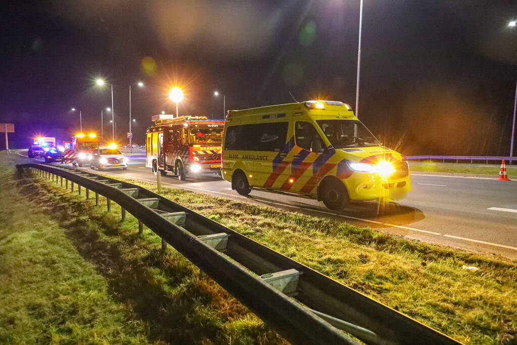 Automobilist crasht en komt meterlager tot stilstand