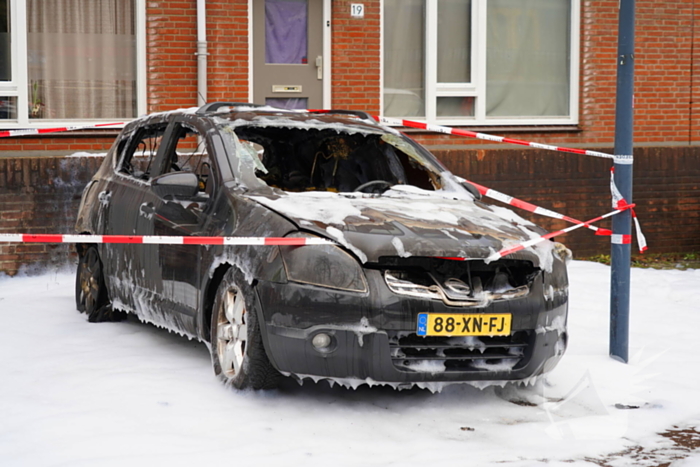Bij aankomst van de brandweer sloegen de vlammen al uit het voertuig. De brand werd opgeschaald naar het sein 'middelbrand', omdat de auto dichtbij een rijtjeshuis stond en de brand dreigde over te slaan.