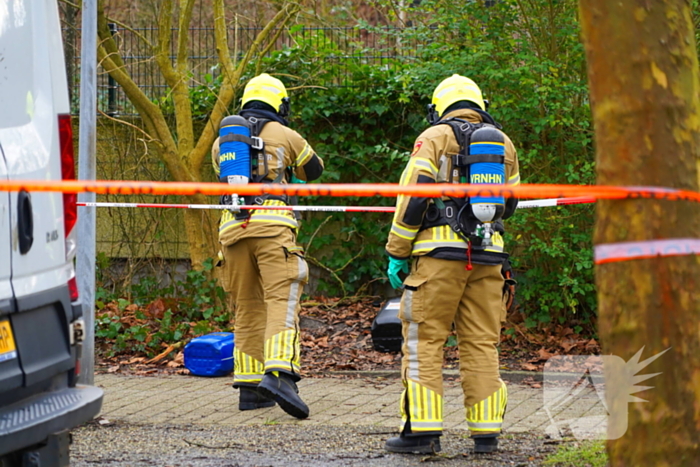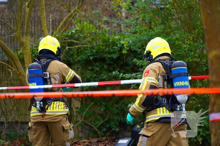 Een adviseur gevaarlijke stoffen is onderweg naar de locatie om de situatie te beoordelen. Ondertussen wordt de zaak door de politie verder onderzocht.