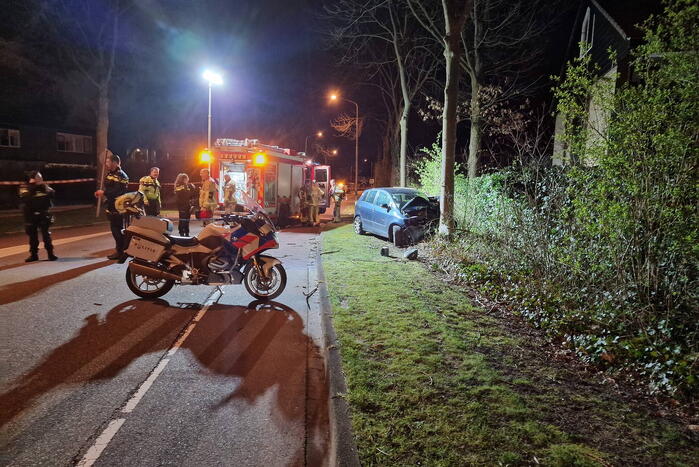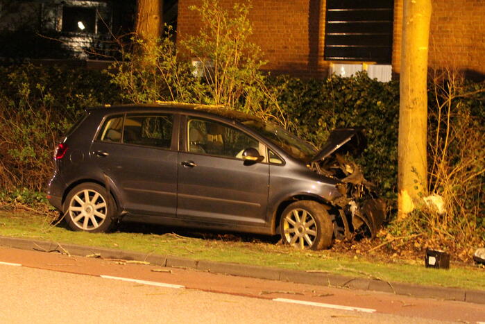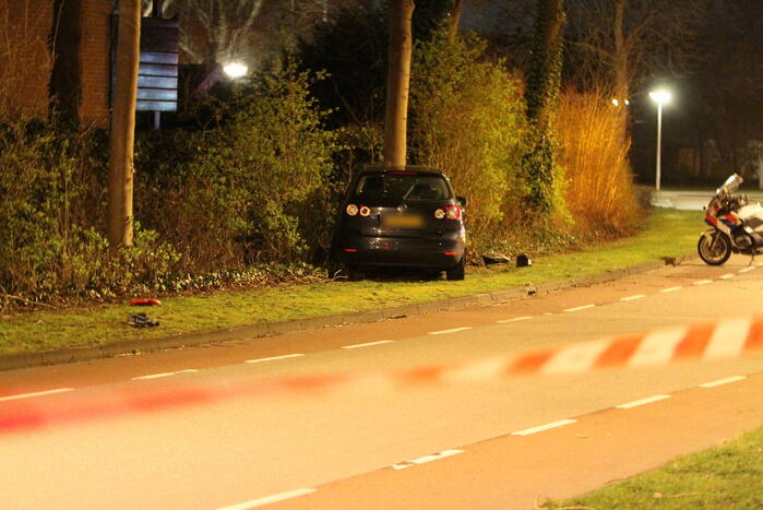 De auto zou met hoge snelheid tegen een boom. Twee inzittenden zijn na een controle naar het ziekenhuis gebracht met een ambulance. Hoewel het een eenzijdig ongeval betreft, onderzoekt de Verkeersongevallen Analyse (VOA) de oorzaak.