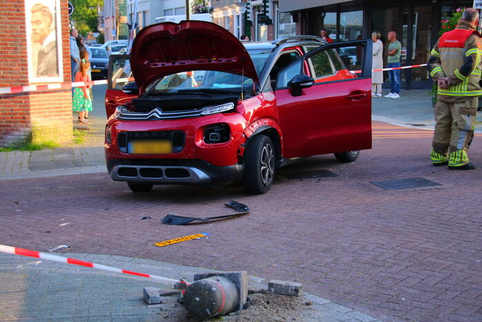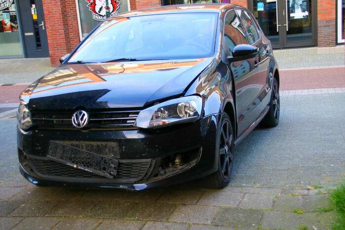 Op een kruising zijn twee personenauto's met elkaar in botsing gekomen. Één van de voertuigen botste hierna op een betonnen paal. Twee inzittenden zijn behandeld door het ambulancepersoneel.