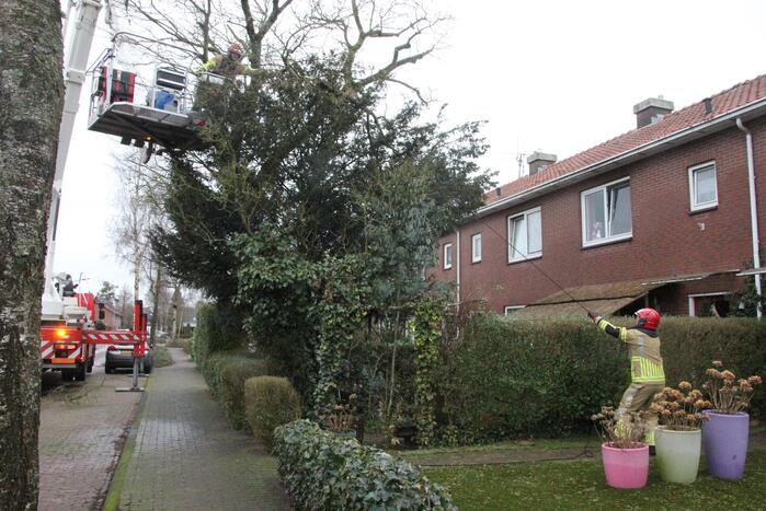 De takken hingen in een boom in de voortuin van een woning. De brandweer kwam aan te pas om deze te verwijderen en een veilige situatie te creëren. Tijdens de inzet van de hulpdiensten was de Warrekam even afgesloten.