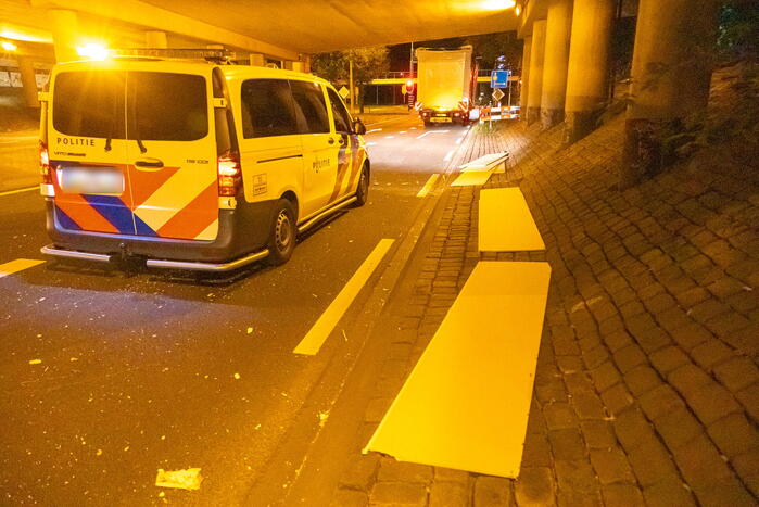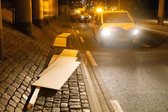 Inmiddels is de weg weer vrijgegeven nadat de brokstukken zijn opgeruimd.