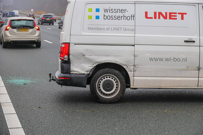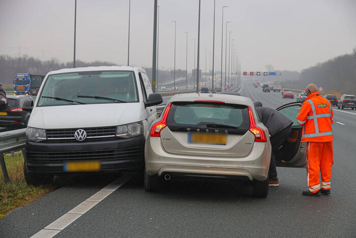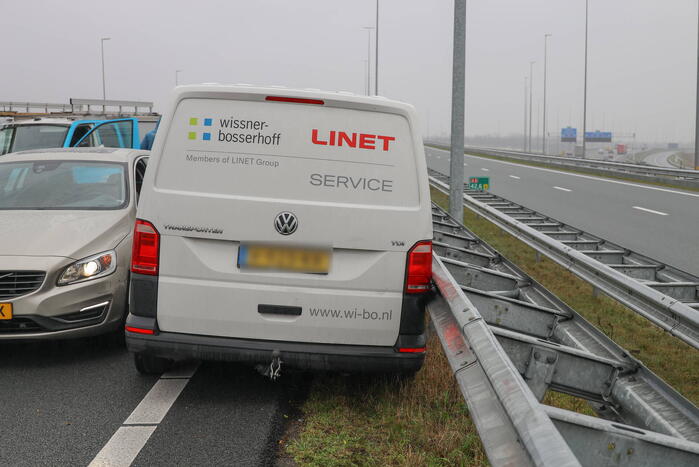 Een bestelauto raakte de vangrail en draaide 180 graden rond en kwam tot stilstand dit gebeurde toen een automobilist tegen de bestelbus botste. Vanaf de A1 vanuit Amsterdam richting de A6 naar Almere ontstond een lange file.