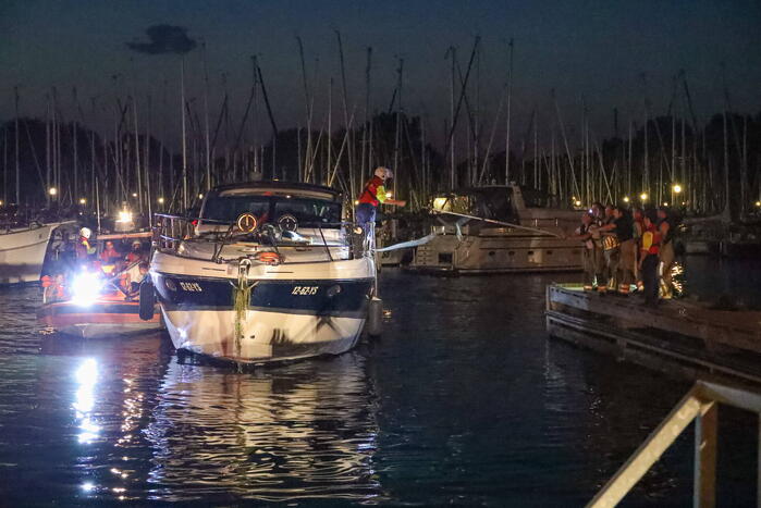 Er zaten acht mensen aan boord van de motorboot. Vermoedelijk is de brand ontstaan doordat de accukabels in brand zijn gevlogen. De motorboot had net vier dagen een nieuwe accu aan boord gekregen. De hulpdiensten kwamen bijeen in de jachthaven van Hoofdgracht in Naarden. De boot is daarheen gesleept.