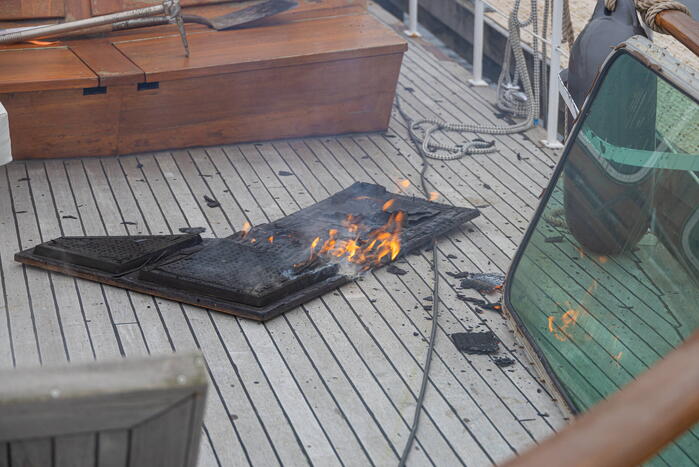 NAARDEN - Donderdagmorgen 28 september om 09.35 uur was brand ontstaan op een plezierjacht aan de Onderwal in 112 Naarden.