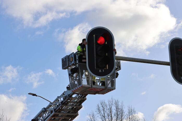 NAARDEN - Donderdagmorgen 17 februari tegen 10.55 uur hing de kap van een verkeerslicht los op de kruising van de Lambertus Hortensiuslaan met de Rijksweg in 112 Naarden.