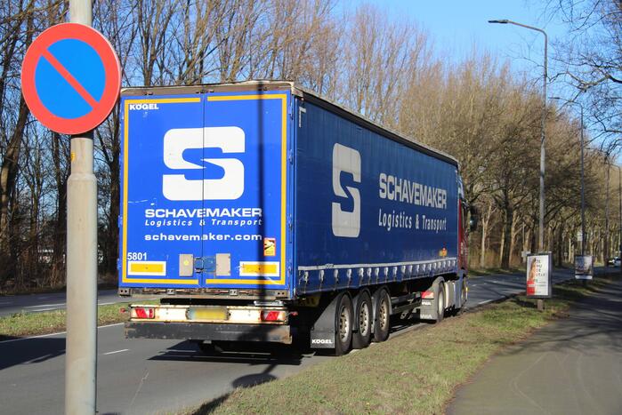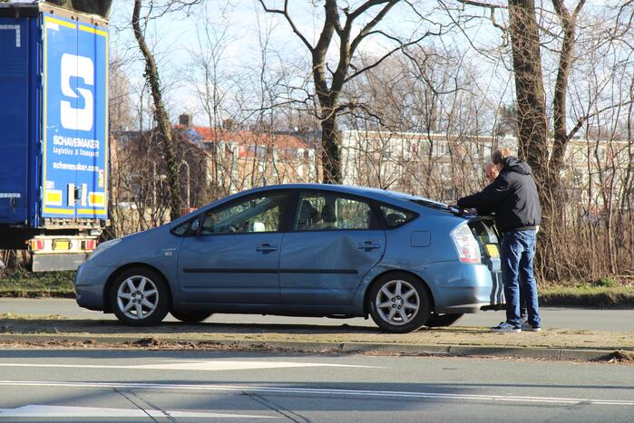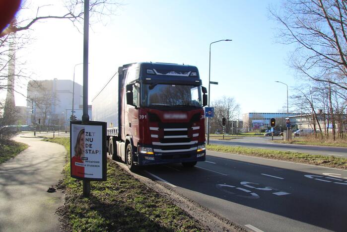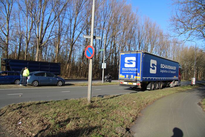 Bij het ongeluk zijn een vrachtwagen en auto met elkaar in botsing gekomen. Zowel de auto als de vrachtwagen hebben schade opgelopen. Hoe het ongeluk heeft kunnen gebeuren, is niet duidelijk.