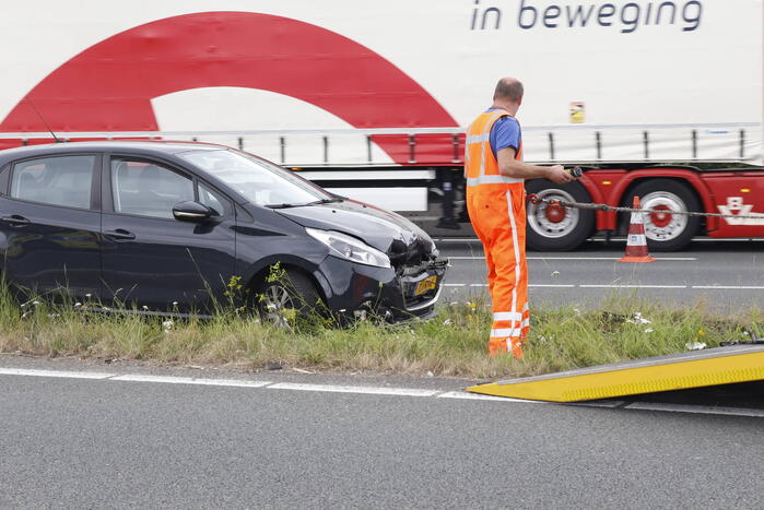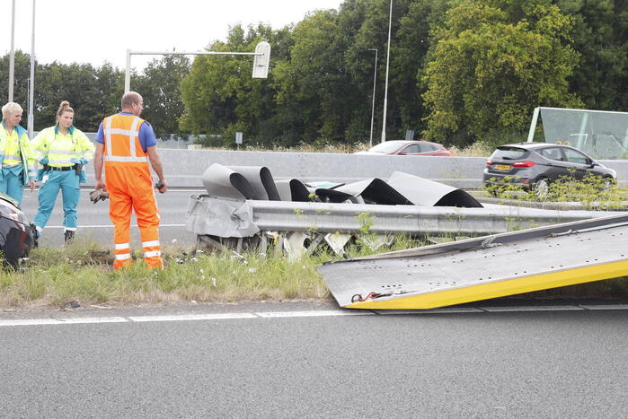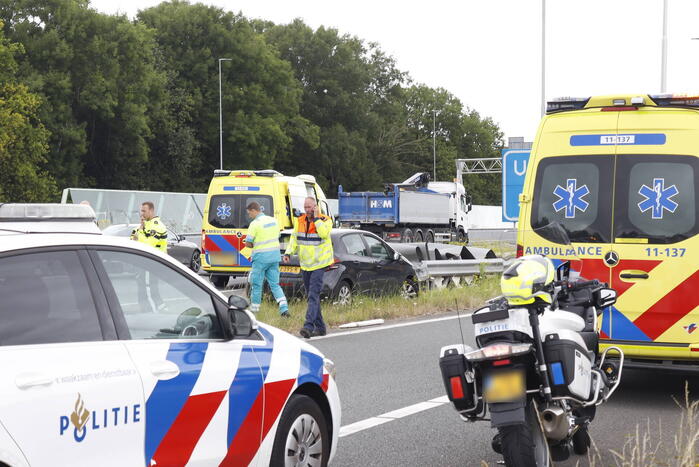 Door het ambulancepersoneel werd één persoon gecontroleerd en voor verder onderzoek naar het ziekenhuis overgebracht. Het verkeer ondervindt enige hinder van het verkeersongeval. De automobilist was met zijn auto van de snelweg raakt en frontaal op een RIMOB gebotst.