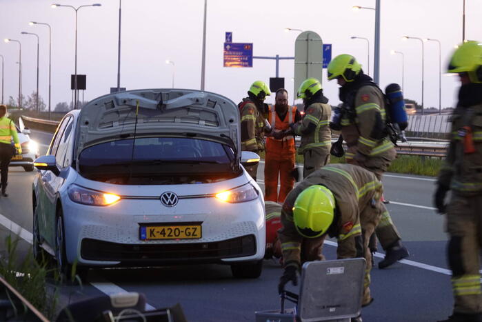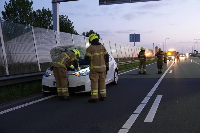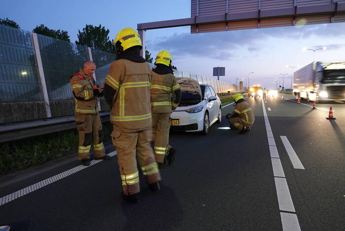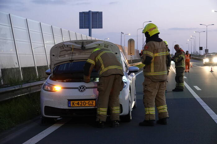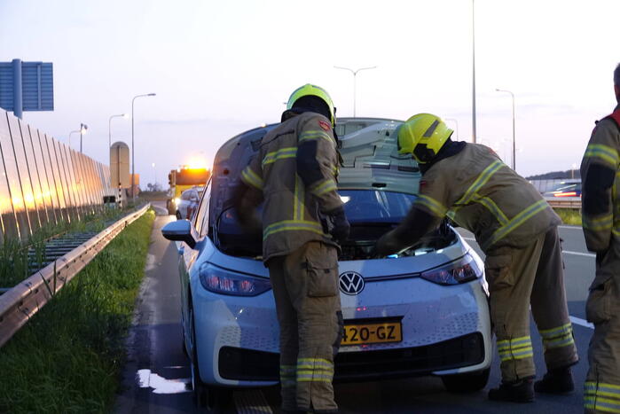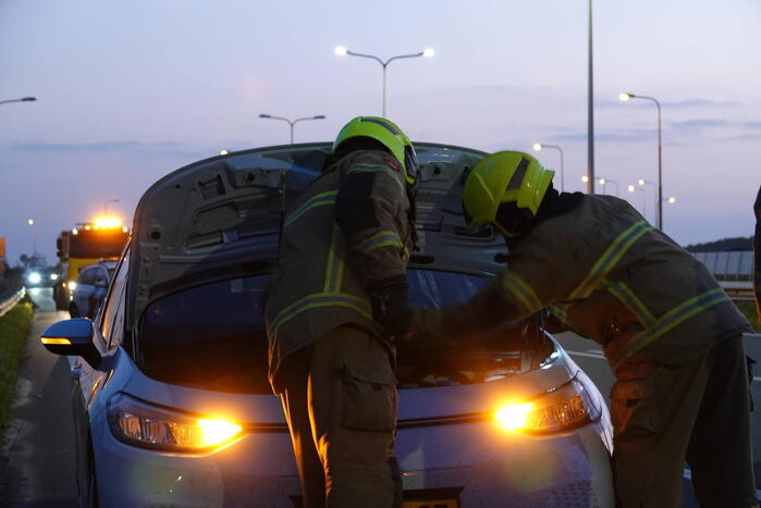ZWAAG - Donderdagavond 25 mei tegen 21.50 uur was brand ontstaan in een elektrische auto aan de Westfrisiaweg - N307 - Westfrisiaweg in 112 Zwaag.