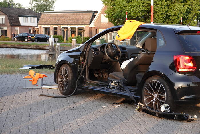 Op een kruising zijn twee personenauto's door onbekende oorzaak in botsing gekomen. De brandweer heeft de deuren van een auto moeten verwijderen om het slachtoffer om het slachtoffer te kunnen bevrijden. De inzittenden van de andere auto kwamen met de schrik vrij.
