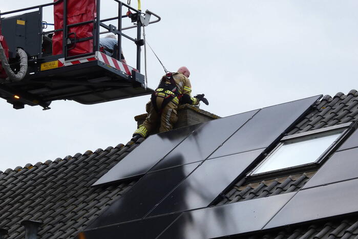 Bij de schoorsteen van een woning was een kauw vast komen te zitten. Omdat de vogel niet meer zelfstandig kon loskomen werd de brandweer ingezet. Met behulp van een hoogwerker kon de vogel snel gevangen worden.