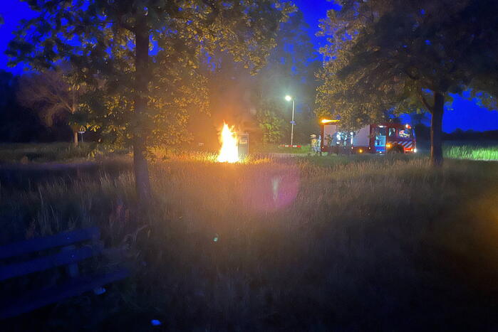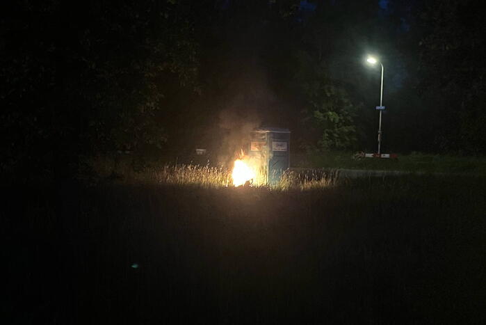 Brandweerlieden werden ingezet om de brand te blussen. Eén Dixi brandde volledig af, een andere die ernaast stond liep flinke brandschade op.