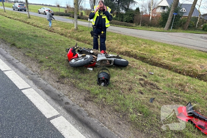 Een motorrijder kwam op de provinciale weg ten val en raakte gewond. De gewonde werd na behandeling door de ambulancemedewerkers naar het ziekenhuis overgebracht. De motor raakte door de val beschadigd.