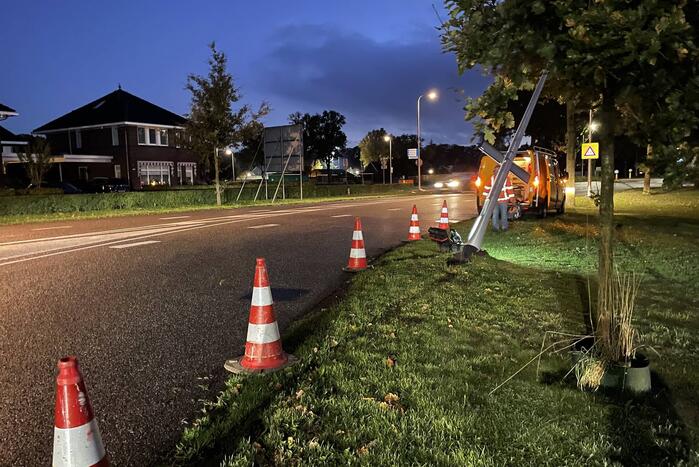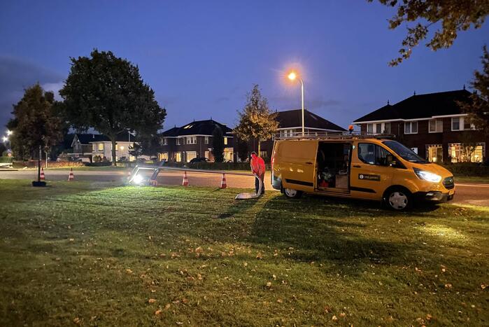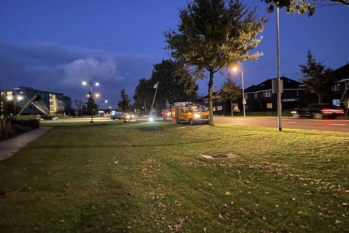 Een auto reed hierbij een lantaarnpaal uit de grond. De politie trof het voertuig niet meer aan. Een speciaal bedrijf zal ter plaatse komen om de lantaarnpaal veilig te stellen. Hoe het voertuig de lantaarnpaal uit de grond heeft gereden, is niet bekend.