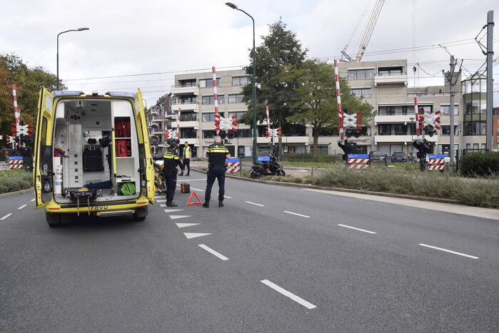 Persoon op scooter onderuit op kruising