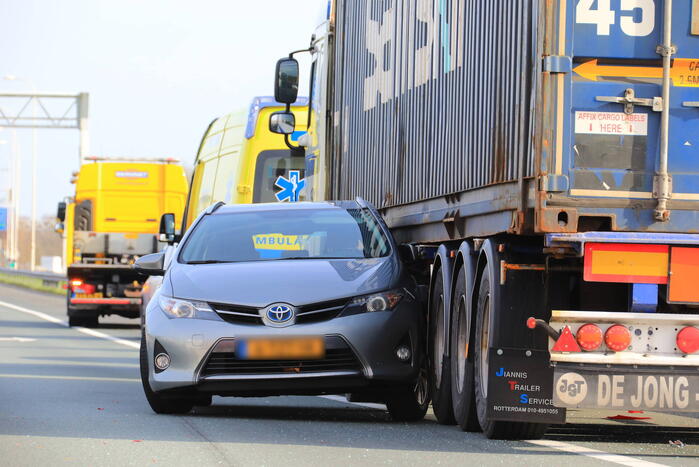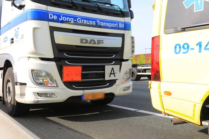 Vrachtwagenchauffeur botst met vrachtwagen achterop personenauto Rijksweg A28 in 112 Amersfoort