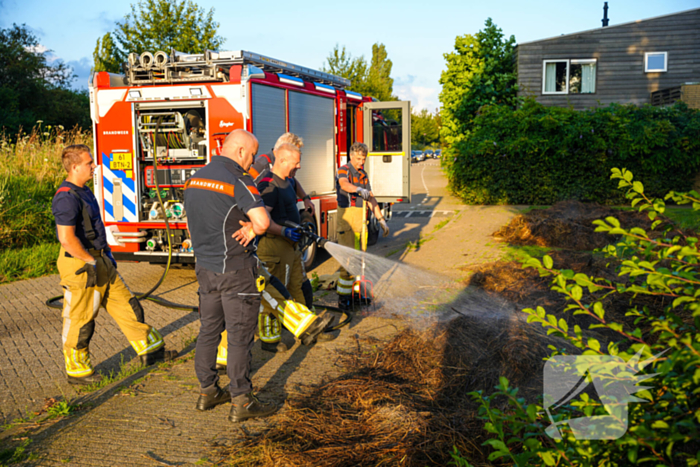 AMERSFOORT - Dinsdagavond 23 juli tegen 20.05 uur was brand ontstaan in een berg maaiafval aan de Nieuwlandsedreef in 112 Amersfoort.