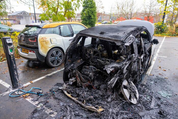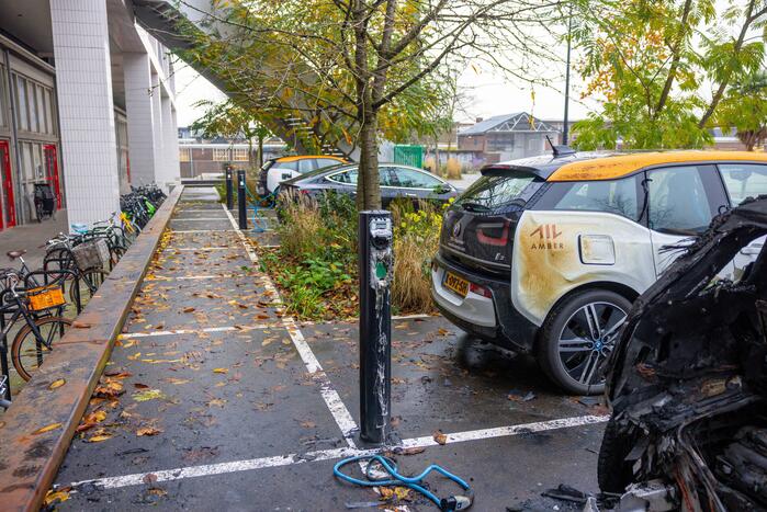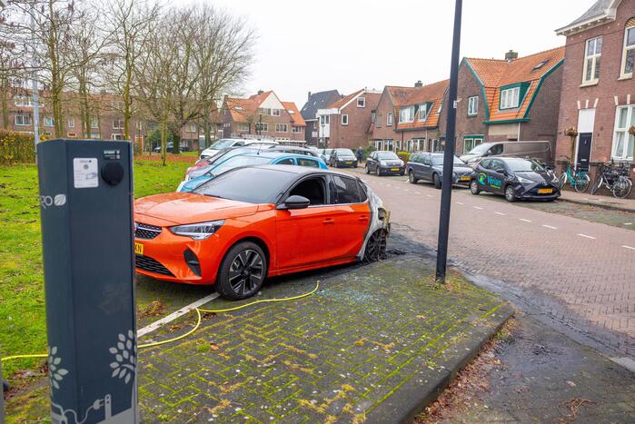 AMERSFOORT - Maandagmorgen 6 december zijn meerdere elektrische voertuigen in vlammen opgegaan, waaronder een geparkeerde persnenauto aan de Flevostraat in de wijk Soesterkwartier in 112 Amersfoort.