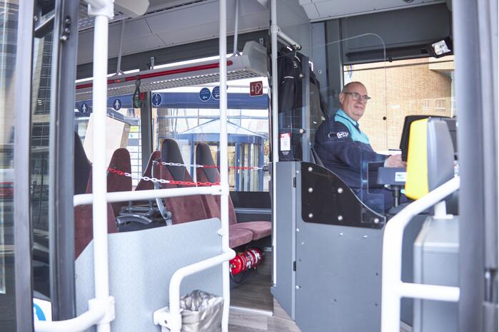 De bestuurdersstoelen van de buschauffeurs zijn voorzien van kuchschermen, waardoor reizigers niet meer achterin hoeven te in- en uitstappen. Vanaf vandaag kunnen reizigers een kaartje kopen, hebben de chauffeurs meer zicht op de reizigers en komen de reizigers niet met elkaar in contact bij het in- en uitstappen.