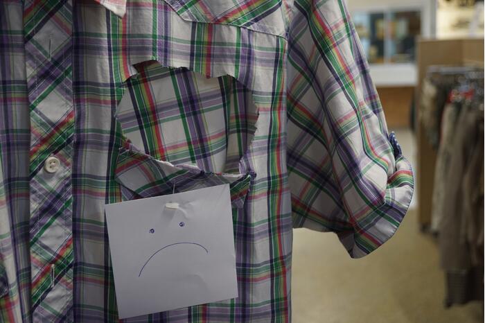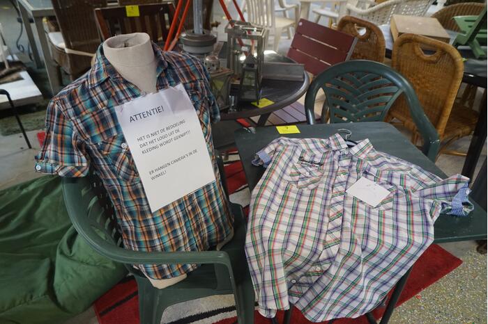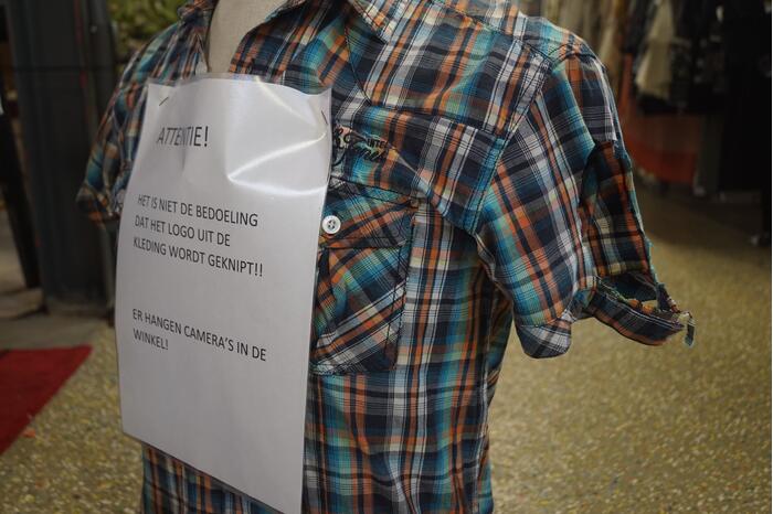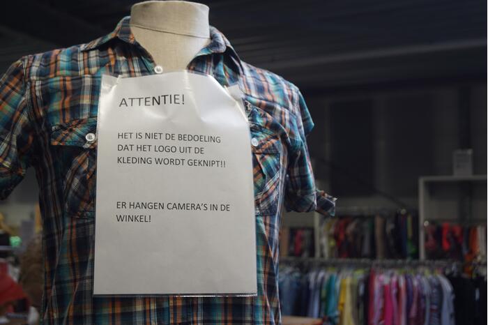 BAARN - Maandagmiddag 16 augustus waarschuwt de kringloopwinkel aan de Baarnsche Dijk in 112 Baarn haar bezoekers om niet de logo's uit de kledingstukken te knippen.