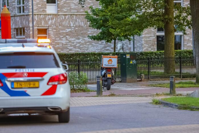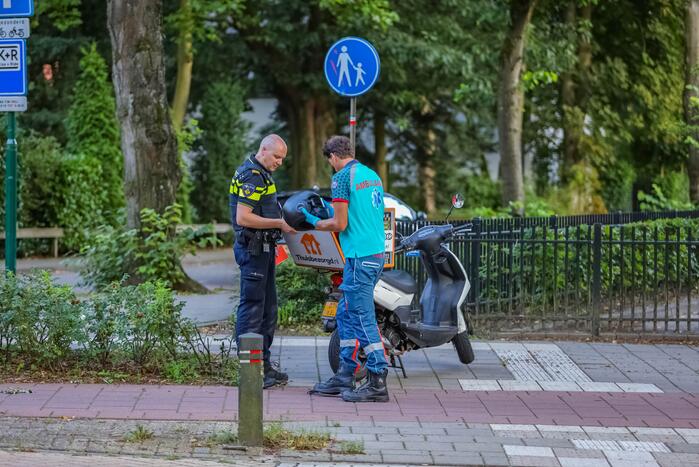 Een maaltijdbezorger op een brommer raakte gewond nadat hij uitgleed met zijn tweewieler. Het slachtoffer is behandeld door het ambulancepersoneel, maar hoefde niet overgebracht te worden naar het ziekenhuis. Deze werd door een kennis opgehaald. De brommer werd later opgehaald.