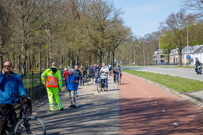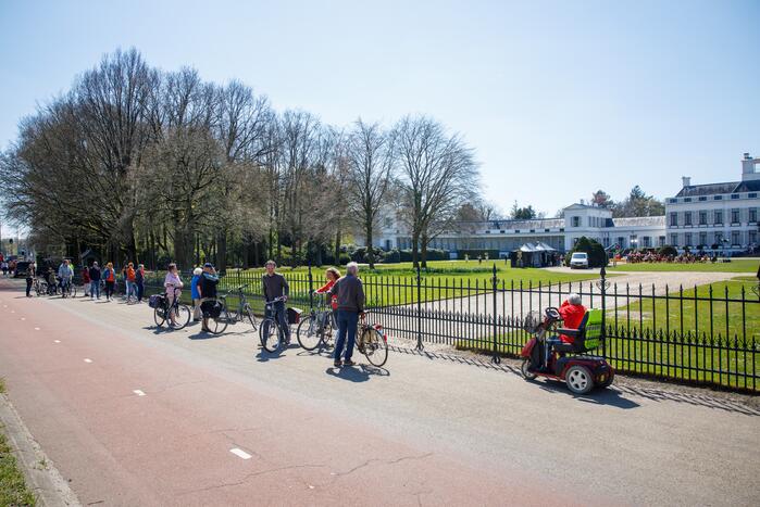 De uitzending met OG3NE, Gerard Joling en André van Duin trekt veel bekijks van omstanders, maar ze mochten van de verkeersleiders niet te lang voor de hekken van het paleis blijven stilstaan. Voorbijgangers werd gevraagd om door te lopen.