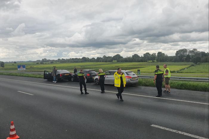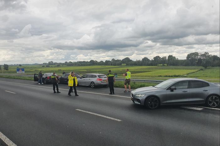Op rotonde nabij de carpoolplaats van de afrit Vinkeveen werd in de berm gezocht door meerdere agenten. Tijdens de achtervolging zouden voorwerpen uit de auto zijn gegooid. De twee inzittenden werden door politie aangehouden.