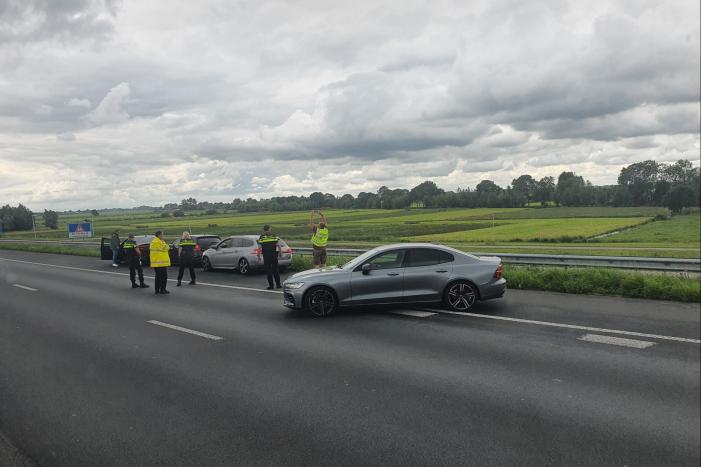 BREUKELEN - Donderdagmiddag 16 juli rond 13.30 uur heeft een speciaal team DSI van de politie een auto aan de Rijksweg A2 bij 112 Breukelen klemgereden na een achtervolging.