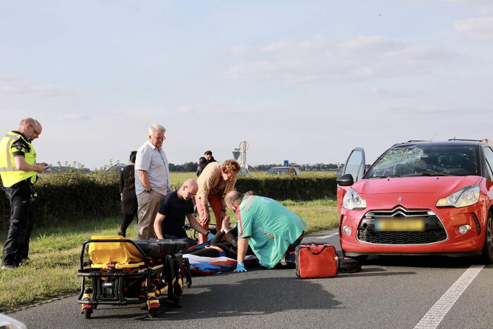 Een vrouw wilde met haar fiets vanaf parallelbaan oversteken naar vermoedelijk haar woning. Hier werd zij aangereden door een personenauto. Mogelijk hebben ze elkaar over het hoofd gezien. De schade en ravage op het wegdek is enorm. Een voorbijkomende autorij-instructeur heeft tijdens de rijles de auto aan de kant gezet, zijn AED en EHBO-kit uit de auto gehaald en eerste hulp geboden. Het slachtoffer is in een vacuummatras gestabiliseerd en per ambulance overgebracht naar het ziekenhuis.