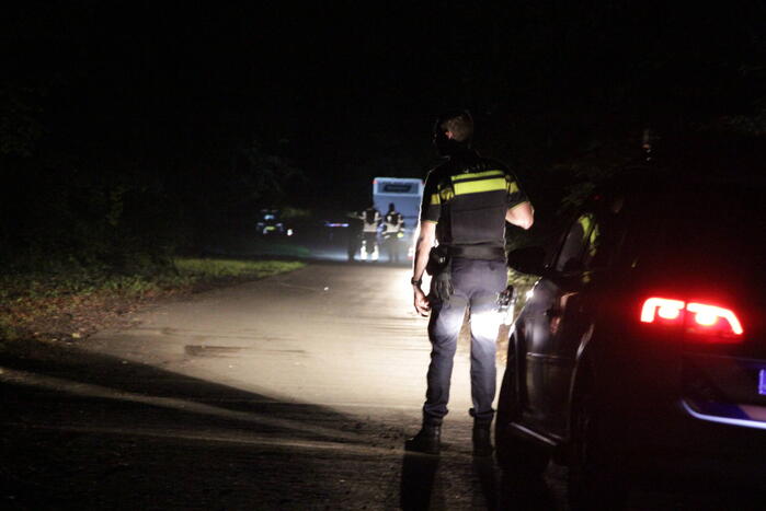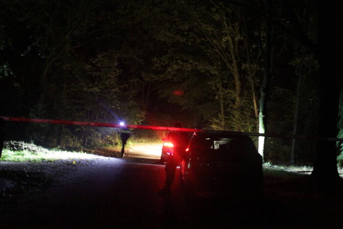 De weg is volledig afgezet door middel van linten. Hoelang het onderzoek zal duren is onbekend