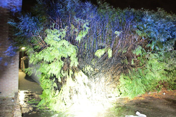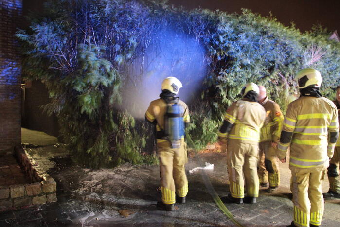 Nadat een sierpot was omgevallen was brand ontstaan in een heg. De brandweer had de brand snel onder controle en kon verdere uitbreiding voorkomen. Omstanders konden op tijd wegspringen en bleven ongedeerd.
