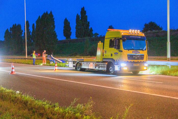 Tijdens het rijden is de as van een aanhanger afgebroken. Gelukkig raakte niemand gewond en belandde de aanhanger met planken in de middenberm. Een berger is gekomen om de aanhanger te bergen. Een rijstrook was even afgesloten.